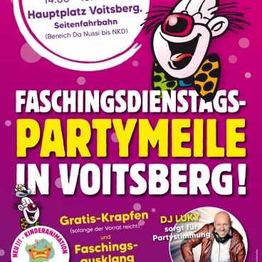 Voitsberg feiert auch heuer wieder den Faschingsdienstag mit einer bunten und fröhlichen Partymeile am Hauptplatz.
