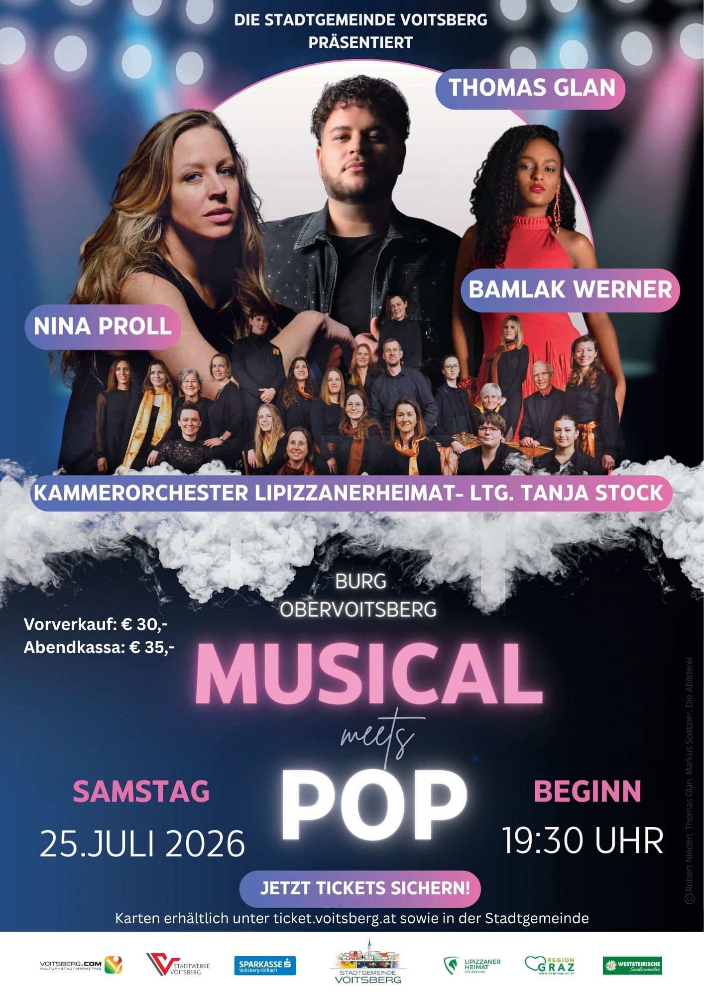 Sichert euch jetzt eure Tickets unter ticket.voitsberg.at und erlebt „Musical meets Pop“ live auf der Burg Obervoitsberg!